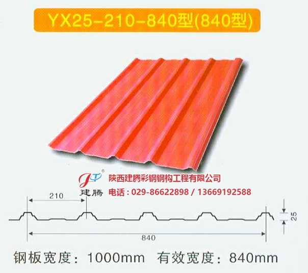 YX25-210-840產(chǎn)品的基板為冷軋基板,熱鍍鋅基板和電鍍鋅基板。涂層種類可分為聚酯、硅改性聚酯、偏聚二氟乙烯和塑料溶膠。彩鋼板的表面狀態(tài)可分為涂層板、壓花板和印花板,彩鋼板廣泛用于大型公共建筑、公共廠房、活動(dòng)板房、及集成房屋的墻面和屋面、交通運(yùn)輸?shù)刃袠I(yè),對于建筑業(yè)主要用于鋼結(jié)構(gòu)廠房、機(jī)場、庫房和冷凍等工業(yè)及商業(yè)建筑的屋頂墻面和門等。