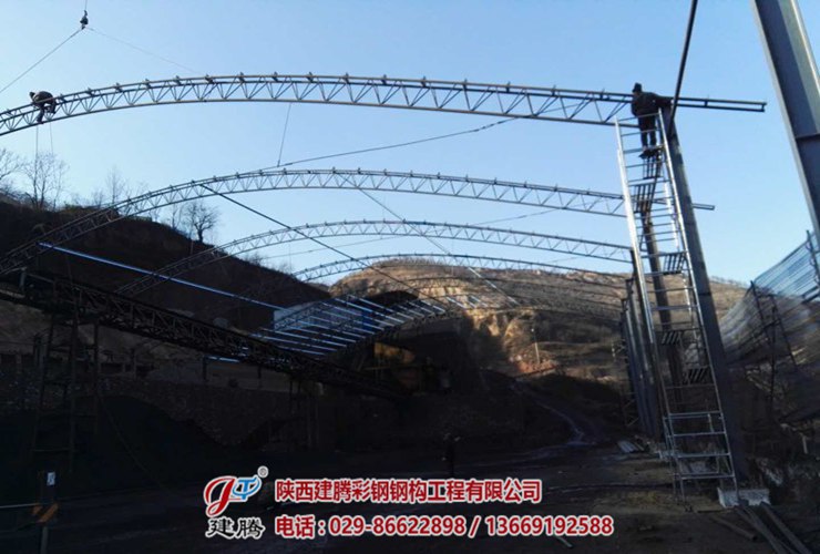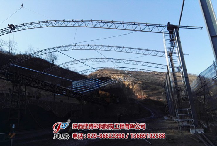 全封閉煤場大跨度鋼結(jié)構(gòu)圓弧大棚,其中傳統(tǒng)煤倉大棚以造價高昂,通風(fēng)差,容易自燃等缺點,作業(yè)人員面臨重大的職業(yè)健康風(fēng)險。而我公司建造的鋼結(jié)構(gòu)大棚具有重量輕,整體性能好,材料強(qiáng)度高,施工周期短,抗風(fēng),抗雪,抗震。減少環(huán)境污染,防風(fēng)抑塵和減少霧霾等方面優(yōu)點,在現(xiàn)在建筑體系中,得到了越來越廣泛的應(yīng)用!