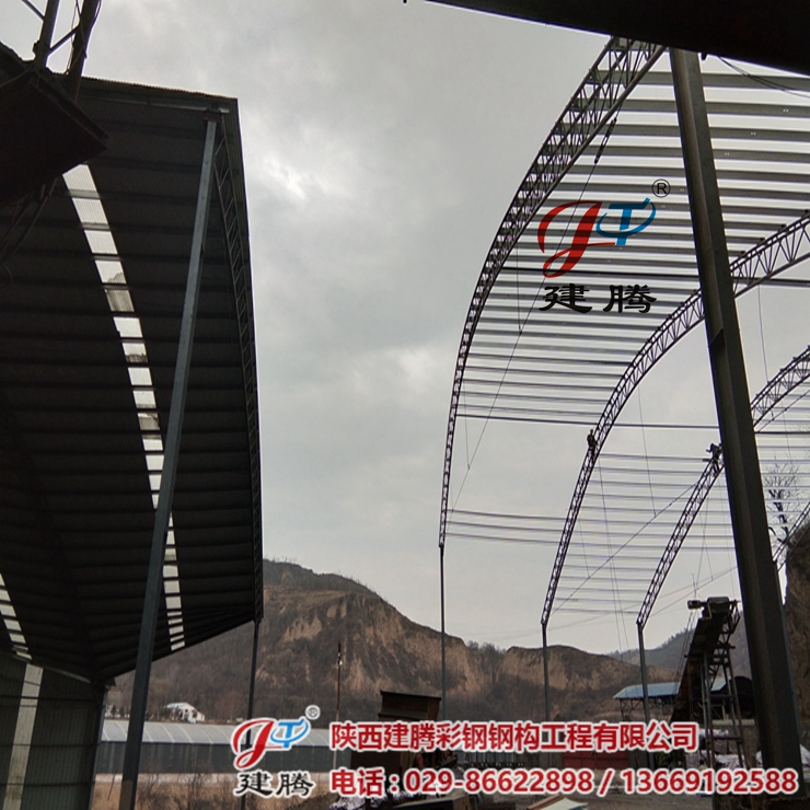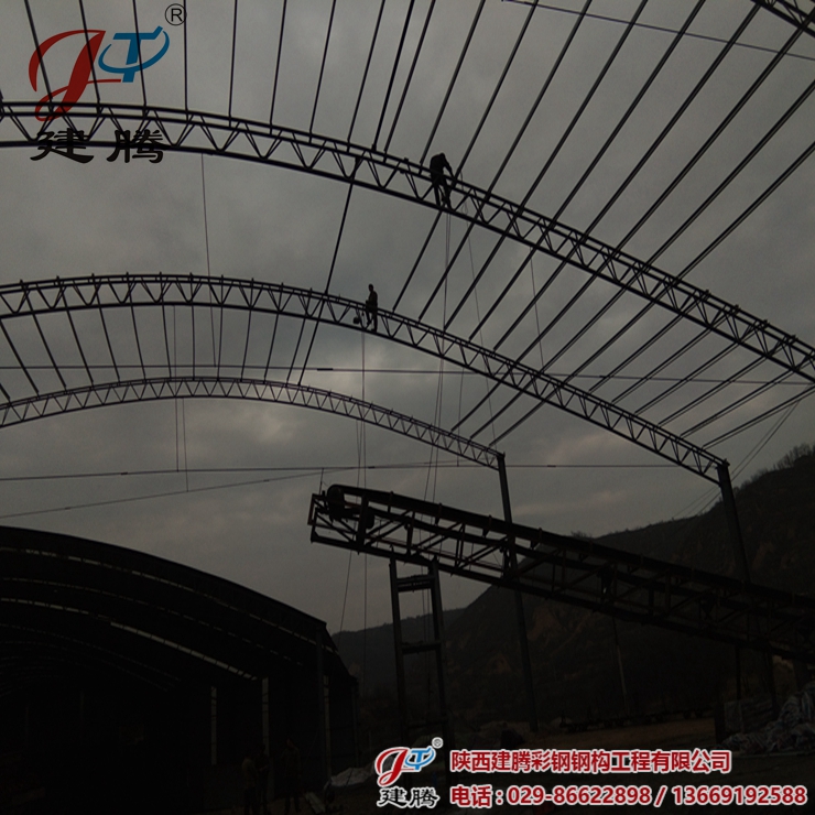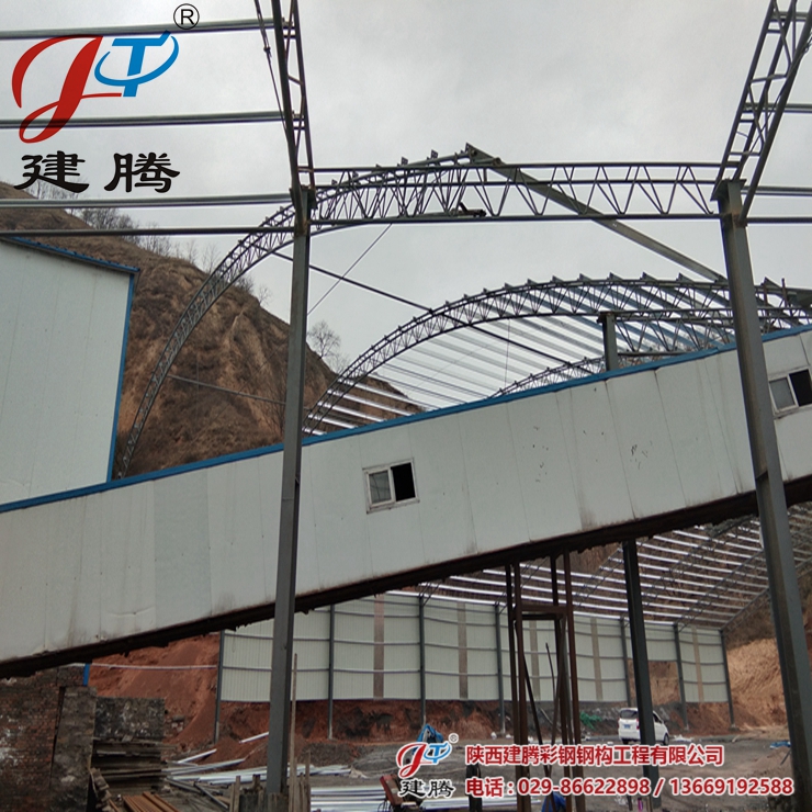 咸陽市彬縣陳家坪煤礦三期,伍千多平方的鋼結(jié)構(gòu)圓弧大棚由我公司承建,工程正在安裝中,45米超大跨度拱形圓弧大棚,現(xiàn)在工程已進行收尾階段,已經(jīng)安裝了三分之二。
