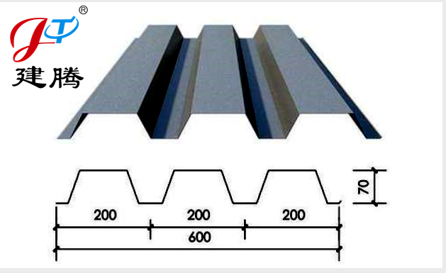效寬度為600mm,是開口型壓型鋼板的一款型號規(guī)格,中構(gòu)新材生產(chǎn)的YX70-200-600壓型鋼板波高為70mm,由三個波組成,每個波距為200mm,原材料主要使用唐鋼、首鋼、鞍鋼等廠家材質(zhì)。