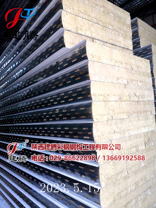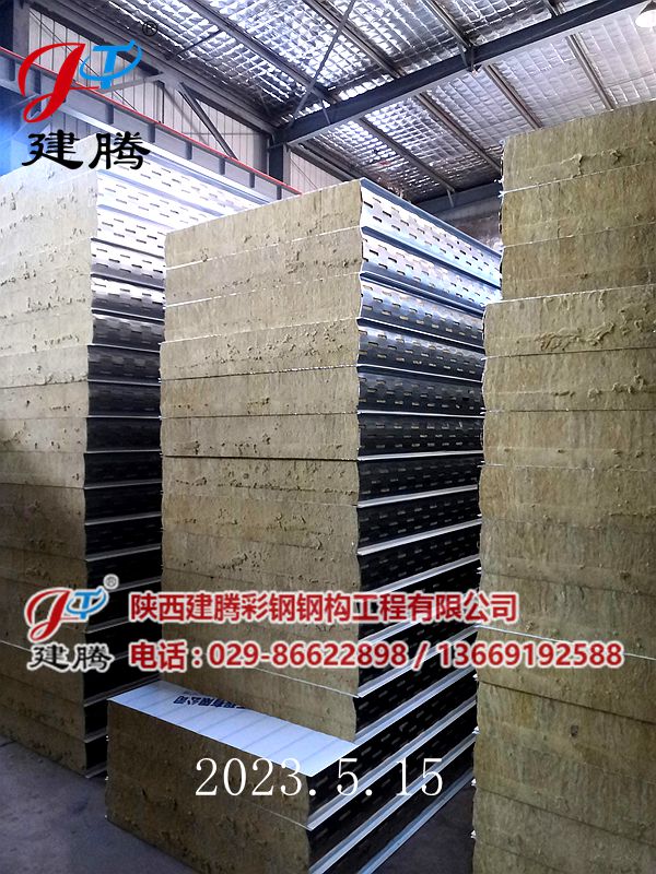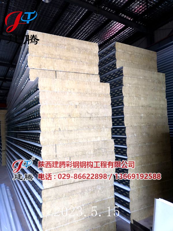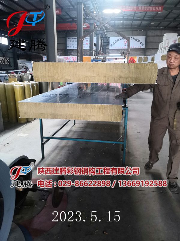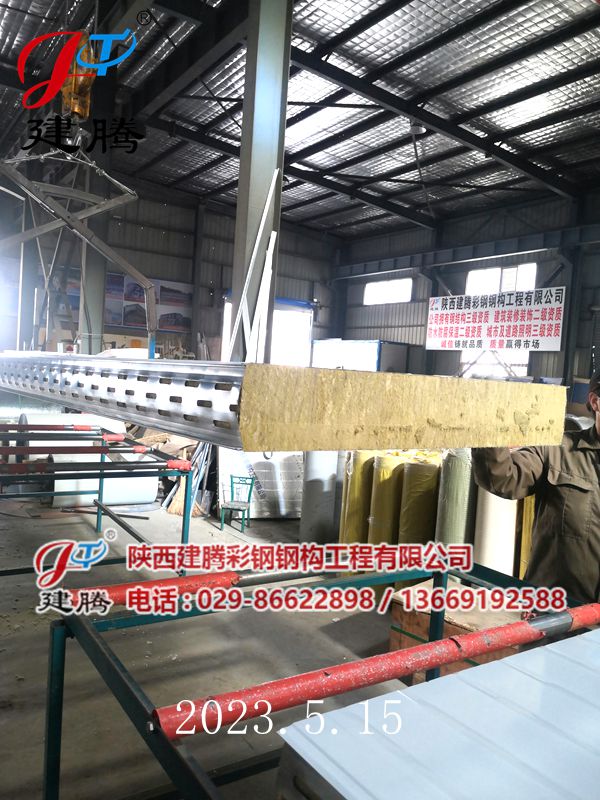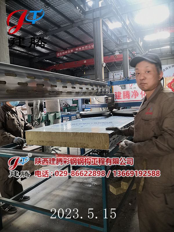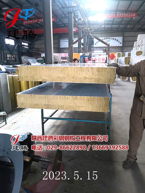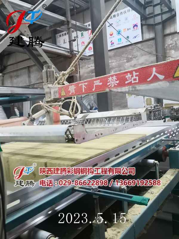2023.5.15 150厚巖棉120公斤容重彩鋼烘道夾芯板生產(chǎn)中