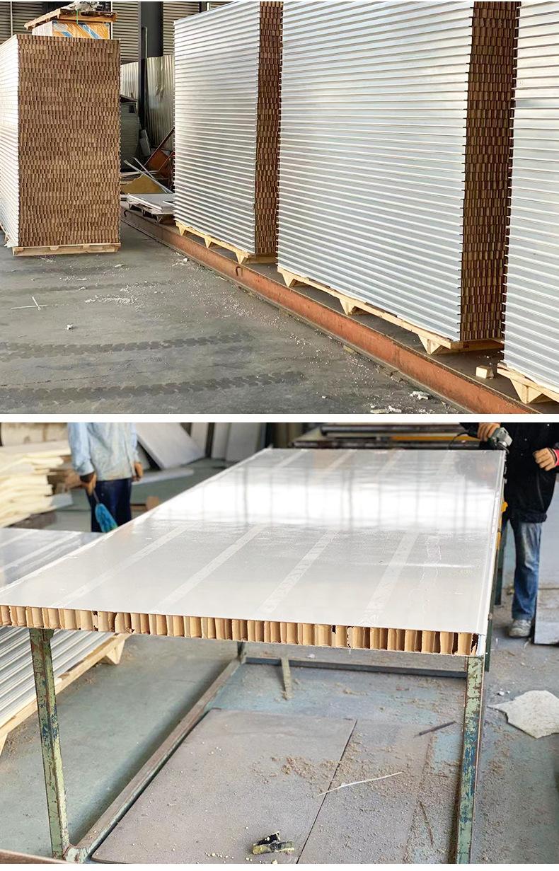 紙蜂窩夾芯板產(chǎn)品是由兩層成型金屬面板(或其他材料面板)和直接在面板中間發(fā)泡、熟化成型的高分子隔熱內(nèi)芯組成。